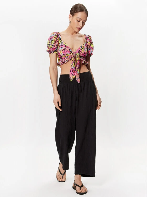 Seafolly Stoffhose Double Cloth 54341-PA Schwarz Relaxed Fit